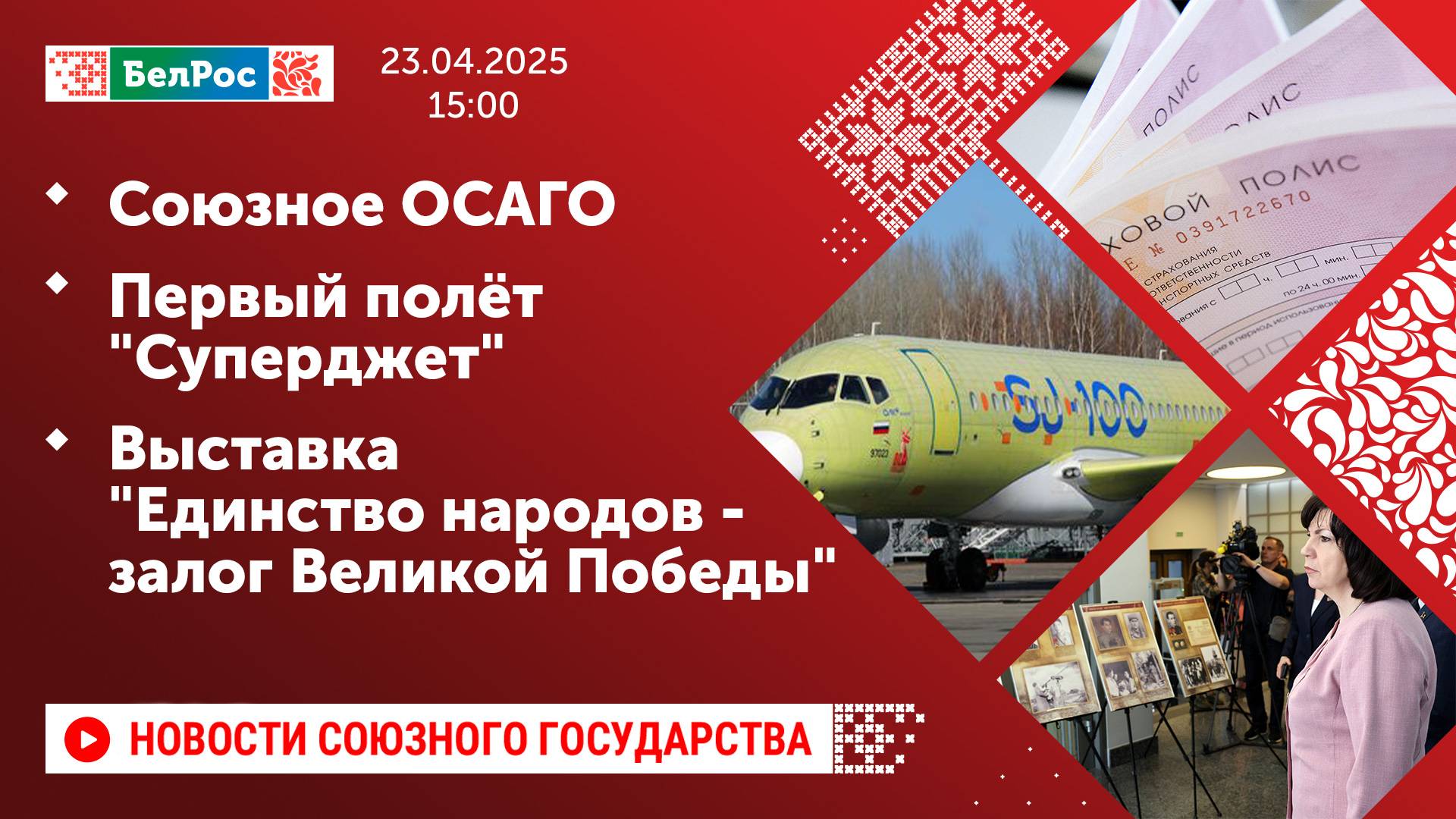 Союзное ОСАГО / Первый полёт "Суперджет" / Выставка "Единство народов - залог Великой Победы"