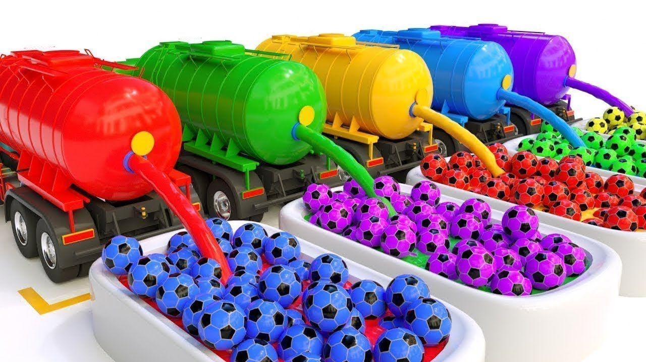 Резервуары с водой и футбольные мячи для изучения цветов — видео для детей