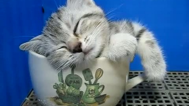 Котёнок спит в чашке