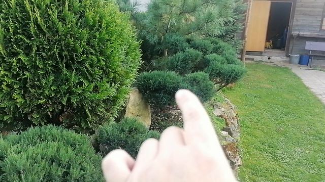 Осенний прирост на стриженных хвойных в нашем саду перед обрезкой.