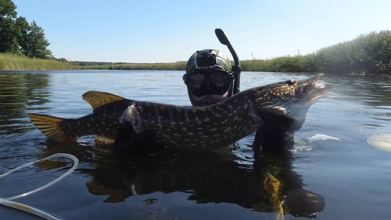 Подводная охота на крупную щуку сплавом Взял неплохой экземпляр