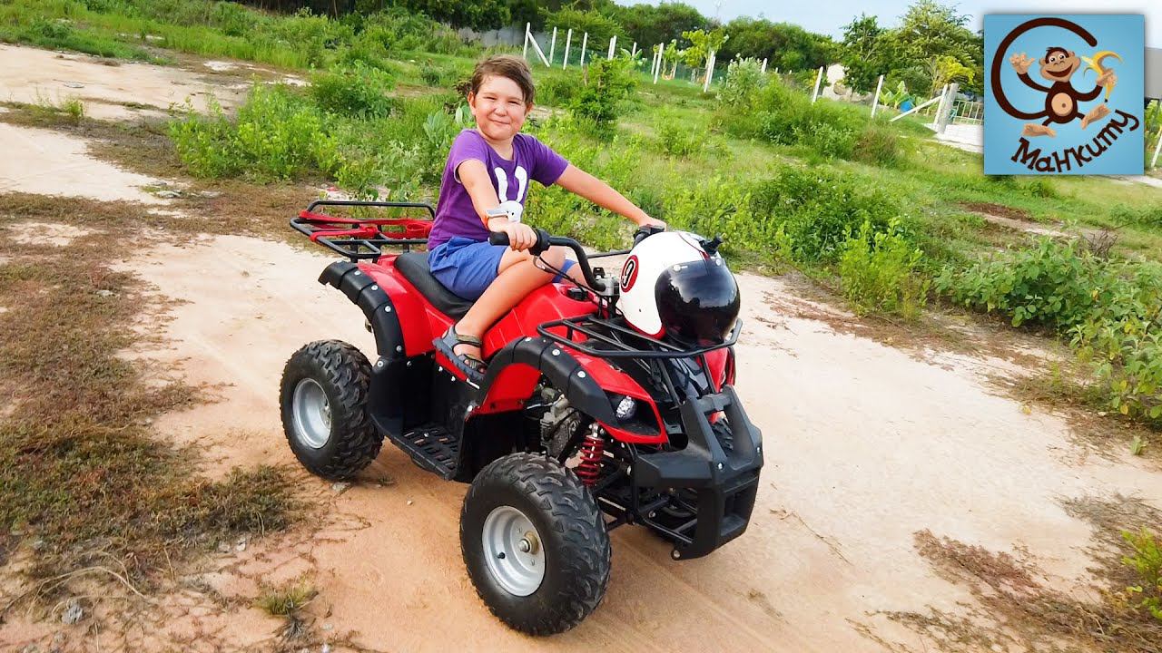 Новое видео для детей на канале Манкиту от Дианы, Дани и Милана. Милан отправился на своём квадроцикле в поле, чтобы покататься на детском квадроцикле по бездорожью, а также устроить тест. Дорогу перекрыло бревном, сможет ли квадроцикл переехать через бревно, а затем утащить его с дороги. Сможет ли квадроцикл для детей выехать из шебня.