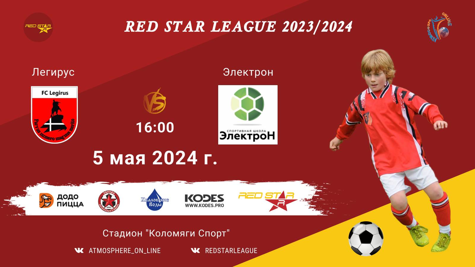 Red Star League среди команд 2013 г.р. (U11) 5 МАЯ АПРЕЛЯ 2024 САНКТ-ПЕТЕРБУРГ, Стадион "Коломяги-Спорт" ФК "Легирус" - ФК "Электрон"/Red Star League, 05-05-2024 16:00