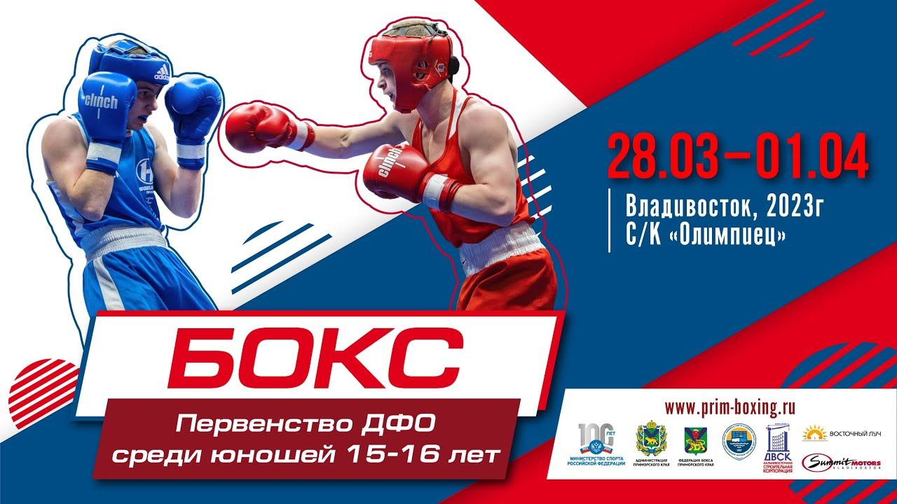 ПЕРВЕНСТВО ДФО ПО БОКСУ СРЕДИ ЮНОШЕЙ 15-16 ЛЕТ Г. ВЛАДИВОСТОК - ДЕНЬ 2 НАЧАЛО В 15:00 (+7 МСК) - ПРЕДВАРИТЕЛЬНЫЕ БОИ РЕГЛАМЕНТ: https://drive.google.com/file/d/1aZWvZB17W1FIzKu4uxHw31DsRVvbQgBe/view?usp=share_link СОСТАВ ПАР: https://drive.google.com/file/d/1Nk95OubW9nsNKrpasM2gXeC184hISz80/view?usp=share_link