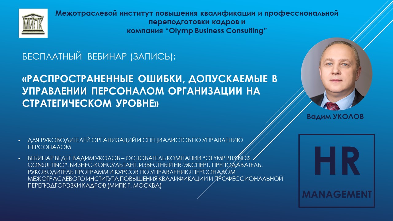 Вадим Уколов о современных технологиях эффективного управления персоналом. Сайт: https://ippk-msk.ru/kursy-hr/ Группы в соцсетях: Вконтакте: https://vk.com/ippk_msk Одноклассники: https://ok.ru/group/53977724027090 Facebook: https://www.facebook.com/ippkmsk