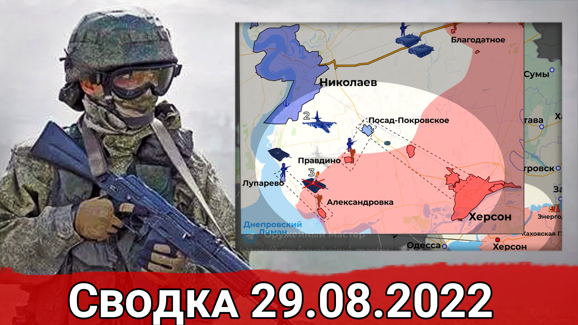 На Николаевско-Криворожском направлении ВСУ начали наступление на нескольких участках после массированного обстрела населенных пунктов Херсонской области. В прорыве были зайствованы бронетанковые подразделения (танки и бмп) при поддержке живой силы и авиации. Общее наступление можно разбить на пять районов. На Александровско-Херсонском направлении наступление развивалось от Лупарево к Александровке и от Посад-Покровского на Правдино и Херсон. Атака со стороны Лупарево была успешно отбита российскими подразделениями. Украинская армия, потеряв три танка, откатилась назад. Также имело место быть продвижение ВСУ вдоль трассы Николаев-Херсон, где ВСУ смогли частично ворваться в Правдино. Бои за данный населенный пункт продолжаются. Также на данном участке ВВС Украины потеряли два штурмовика СУ-25, которые оказывали поддержку при наступлении. Друзья, поддержать наш проект вы можете, отправив денежный перевод на карту Сбербанка и Яндекс Кошелек: Карта Сбербанка -- 4276 1605 9355 4547 Яндекс Кошелек -- 410019779835638