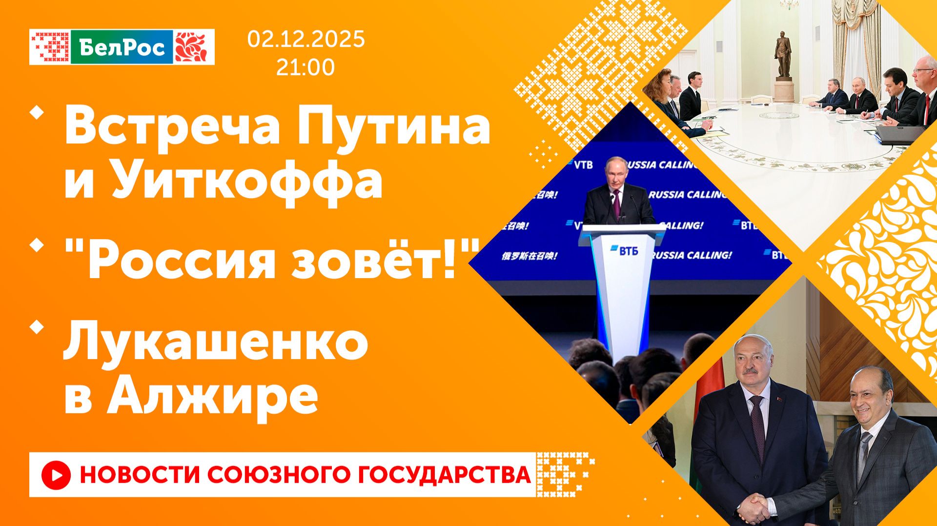 Встреча Путина и Уиткоффа / "Россия зовёт!" / Лукашенко в Алжире