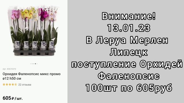 #ВНИМАНИЕ ⚠️В #ЛеруаМерлен #Липецк свежий привоз. #ОРХИДЕИ 100шт по 605руб #фаленопсис #объявление