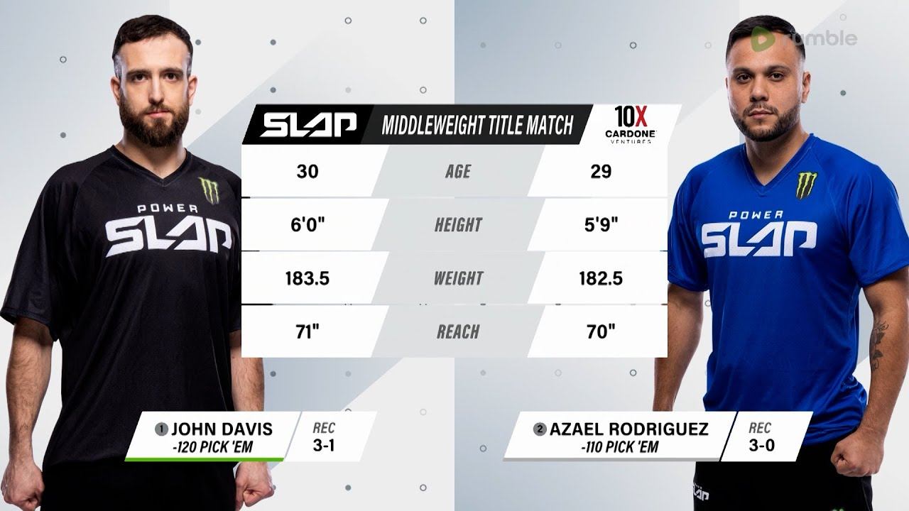Don't miss Power Slap 2, May 24, on RUMBLE https://rumble.com/powerslap Relive Power Slap 1: John Davis vs Azael Rodriguez before the newly crowned champions defend their titles May 24 on Rumble! Watch the Power Slap 2 live & free on RUMBLE http://bit.ly/3J7WHCr ‼️ Rumble is free on desktop, mobile and web at www.rumble.com, iOS, Android, Roku, AppleTV, FireTV, Android TV and LG TV. Live results: http://bit.ly/3FjKSIq Subscribe to get all the latest UFC content: https://ufc.ac/3u8FIJp Experience UFC live with UFC FIGHT PASS, the digital subscription service of the UFC. Visit https://ufcfightpass.com/ To order UFC Pay-Per-Views on ESPN+, visit https://ufc.ac/3NKBvmx (U.S. only) To order UFC Pay-Per-Views, visit http://welcome.ufcfightpass.com/#PPV (Non U.S.) Shop official UFC Gear, visit https://ufcstore.com Shop official UFC Memorabilia, visit https://ufccollectibles.com Shop official UFC VIP Live Event Experiences, visit https://ufc.ac/3Oz2gLH Connect with UFC online and on Social: Website: http://www.ufc.com Twitter: http://www.twitter.com/ufc Facebook: http://www.facebook.com/ufc Instagram: http://www.instagram.com/ufc Snapchat: UFC Twitch: https://www.twitch.tv/ufc Connect with UFC FIGHT PASS on Social: Twitter: http://www.twitter.com/ufcfightpass Facebook: http://www.facebook.com/ufcfightpass Instagram: http://www.instagram.com/ufcfightpass #UFC #PowerSlap #PowerSlap2 #DanaWhite