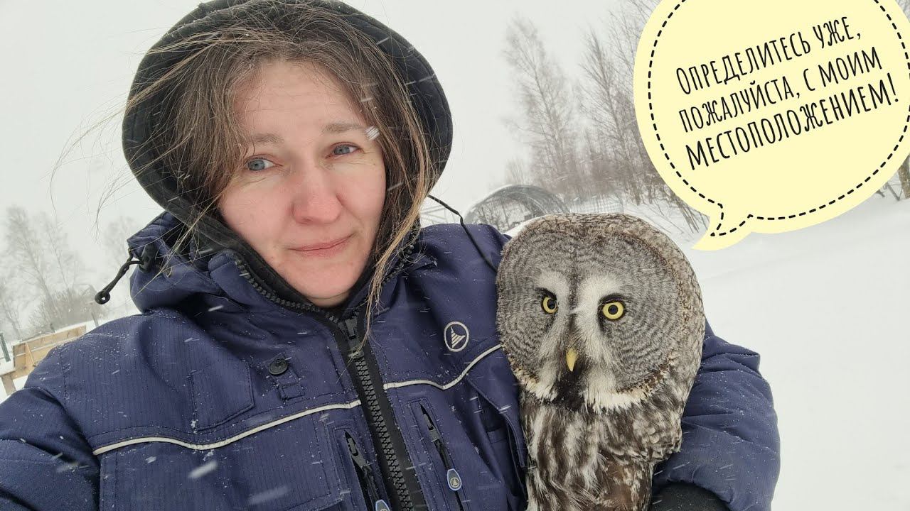 Идём с совой сквозь вьюгу и метель. Неясыть Кофи сдувает в вольере