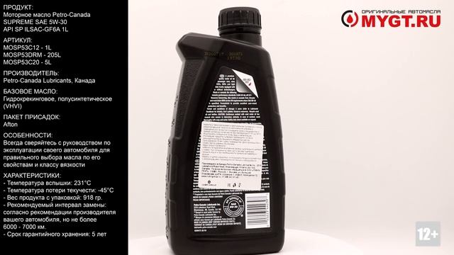 Моторное масло Petro-Canada SUPREME SAE 5W-30 API SP ILSAC-GF6A 1L MOSP53C12 #ANTON_MYGT