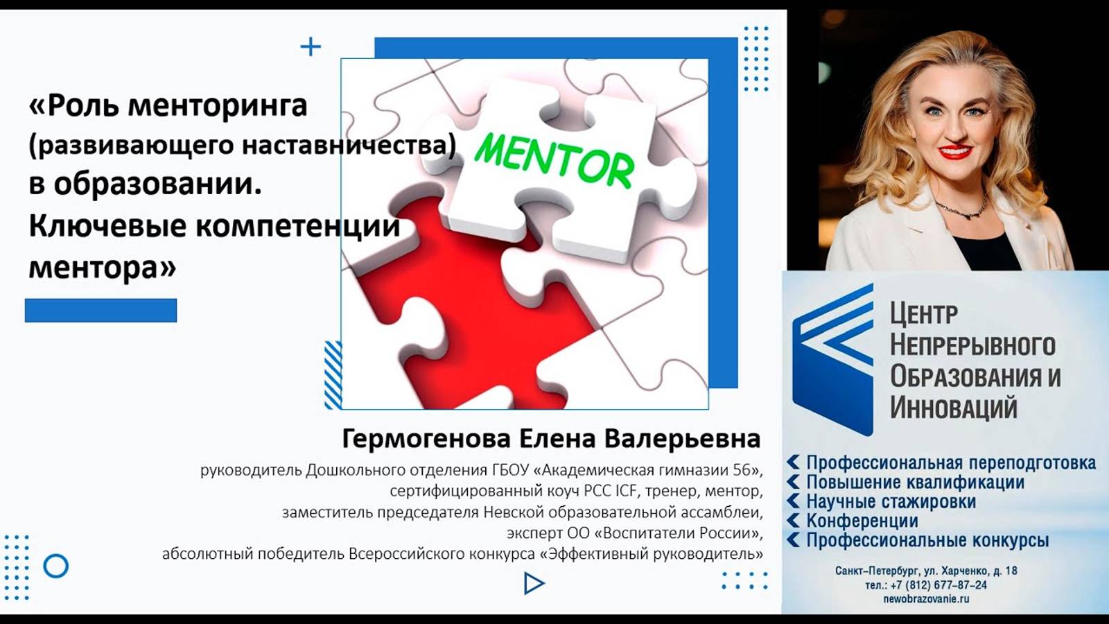 К 2024 не менее 70% обучающихся и педагогических работников должны быть вовлечены в различные формы наставничества и сопровождения • Вы не знаете, с чего начать внедрение программы менторинга в организацию? • Хотите повысить компетенции руководящих кадров вашего региона? • Понимаете, что директива вызовет сопротивление и вы не знаете, как начать внедрение проекта и мотивировать систему образования региона на изменения? • Как мотивировать систему образования своего региона/субъекта/города/района на изменения? Ответ есть! Посмотрите запись вебинара Центра Непрерывного Образования и Инноваций (https://newobrazovanie.ru/) «Роль менторинга (развивающего наставничества) в образовании. Ключевые компетенции в образовании». Для кого вебинар: • Административный корпус (директора, заведующие, заместители) образовательных организаций • Руководители подразделений органов УО и ответственные лица за реализацию системы менторства в субъектах • Педагоги образовательных организаций #воспитатели #дошкольноеобразование #родители #родителиидети #гермогенова #гермогеноваелена
