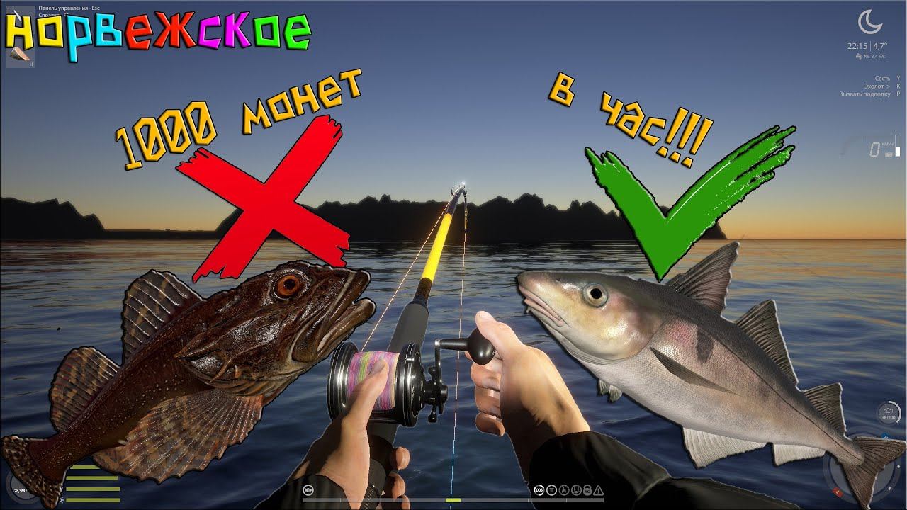 Русская Рыбалка 4. Норвежское море. 1000 в час!!!