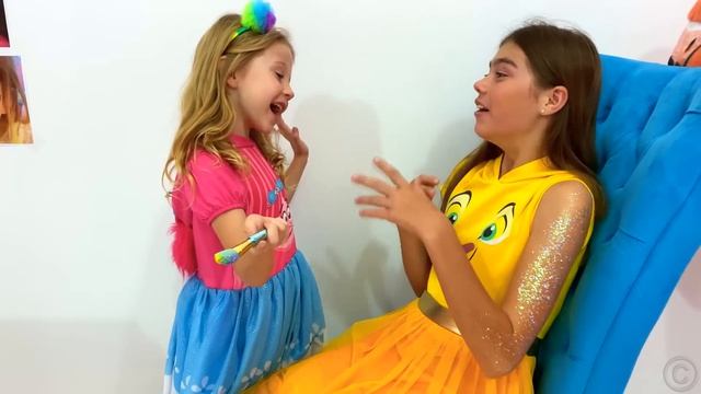 Настя делает аквагрим для конкурса красоты