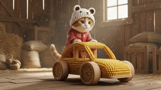 Мама-кошка и котенок строят СУПЕР крутую машину из кукурузы