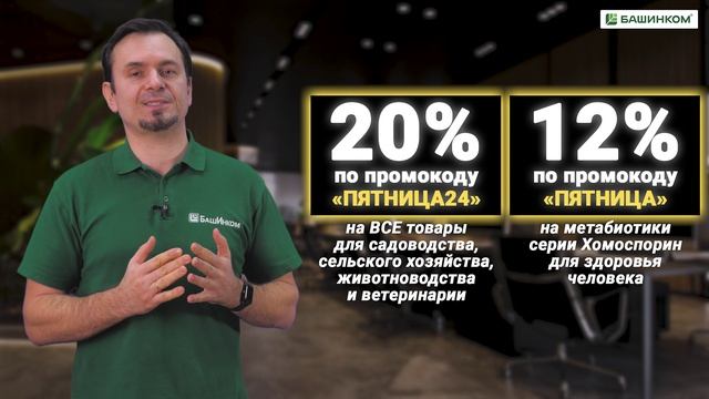 С 11 ноября по 1 декабря 2024 года все заказчики нашей продукции через интернет-магазин «БашИнком в каждый дом» получат 20%-ную скидку на всю линейку продукции по ОЖЗ, АВЗ, ПроДекор, АВЖ, т.е. всех биопрепаратов для сельского хозяйства, земледелия, животноводства, садоводства и ветеринарии (на все позиции, кроме семян). А также 12%-ную скидку на всю линейку БАДов — метабиотиков для здоровья человека. У нас все распродажи честные: снижаем цены на деле! Поспешите воспользоваться выгодным предложением и запастись на будущий сезон всем необходимым уже сегодня! Ссылка на наш интернет-магазин — https://bashinkom-v-dom.ru/ Органическое Живое Земледелие для сада и огорода — это биопрепараты и удобрения для садоводов, огородников и фермеров, которые хотят вырастить больше качественного, насыщенного МЕГАвитаминами и минералами урожая — https://bashinkom-v-dom.ru/catalog/organicheskoe-zhiv.. Антистрессовое Высокоурожайное Земледелие для сельского хозяйства — широкий спектр микробиологических удобрений, гуминовых удобрений, биопрепаратов для оздоровления почвы, для повышения ее плодородия и урожайности всех культур, которые выращивают сельхозпредприятия — https://bashinkom-v-dom.ru/catalog/antistressovoe-vys.. Антистрессовое Высокопродуктивное Животноводство — это биопрепараты для домашних животных и микробиологическая линейка для промышленного животноводства, забота о здоровье пчёл и братьях наших меньших — https://bashinkom-v-dom.ru/catalog/antistressovoe-vys.. Экопродукция для Дома и Быта — косметическая линейка, разработанная на биологических ингредиентах, для здоровья людей — https://bashinkom-v-dom.ru/catalog/brstrongedbstrongb.. ПроДекор — Профессиональная Декоративная Линия поможет создать красоту на приусадебном участке, на даче и саду по всем законам ландшафтного дизайна, научит ухаживать за любыми растениями — https://bashinkom-v-dom.ru/catalog/prodekor ИН — Игровые Наборы «Летающие самолёты» — набор журналов для детского творчества и развития — https://bashinkom-v-dom.ru/catalog/brstronginstrongbr.. СП — Свежий Пробиотик — серия метабиотиков для здоровья человека, они укрепят иммунитет и повысят сопротивляемость к заболеванию инфекционными заболеваниями — https://bashinkom-v-dom.ru/catalog/svezhii-probiotik
