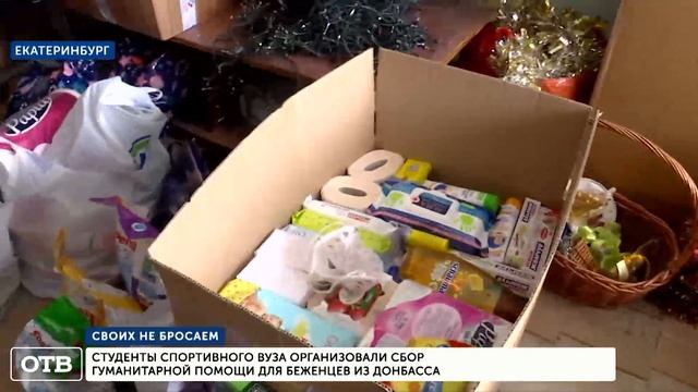 Своих не бросаем. Под таким девизом студенты спортивного вуза организовали сбор гуманитарной помощи для беженцев из Донбасса. Учащиеся и преподаватели помимо продуктов, а также вещей первой необходимости, принесли и спортинвентарь.