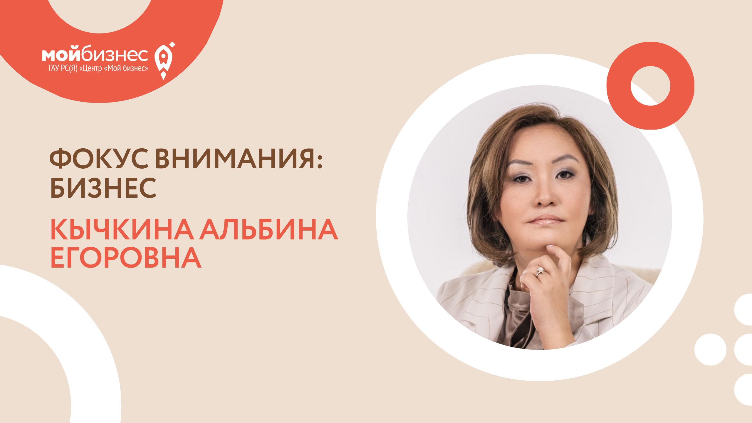 Спикер медиапроекта Кычкина Альбина Егоровна - Уполномоченный по защите прав предпринимателей в РС(Я). Медиапроект «Фокус внимания: бизнес». В программе мероприятия — диалог власти и предпринимателей с активной жизненной позицией, освещение опыта по поддержке земляков в период частичной мобилизации, вопросы патриотического воспитания детей, ответы на актуальные вопросы в части ведения бизнеса. Кроме того, во время медиапроекта все участники смогли задать интересующие вопросы лично министру предпринимательства, торговли и туризма республики, уполномоченному по защите прав предпринимателей Якутии, а также гостям студии.