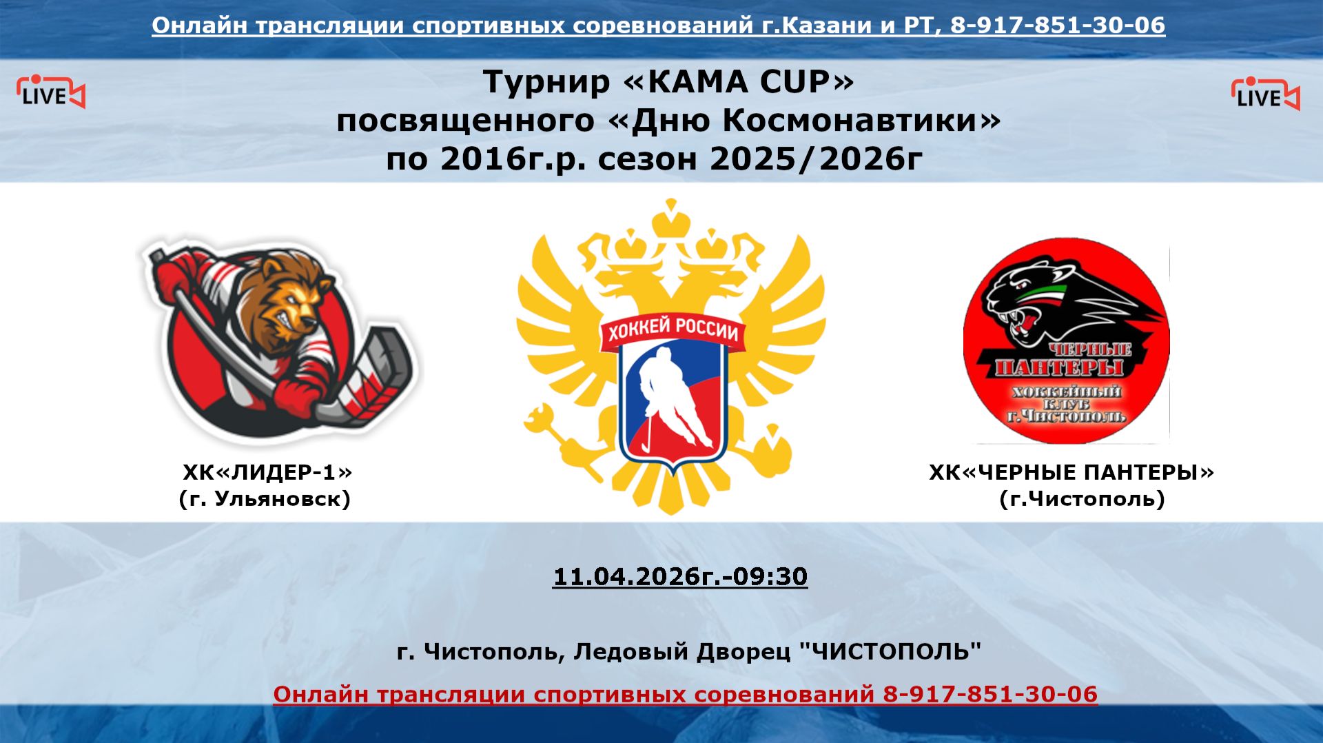 ХК«ЛИДЕР-1» (г. Ульяновск) - ХК«ЧЕРНЫЕ ПАНТЕРЫ» (г.Чистополь)