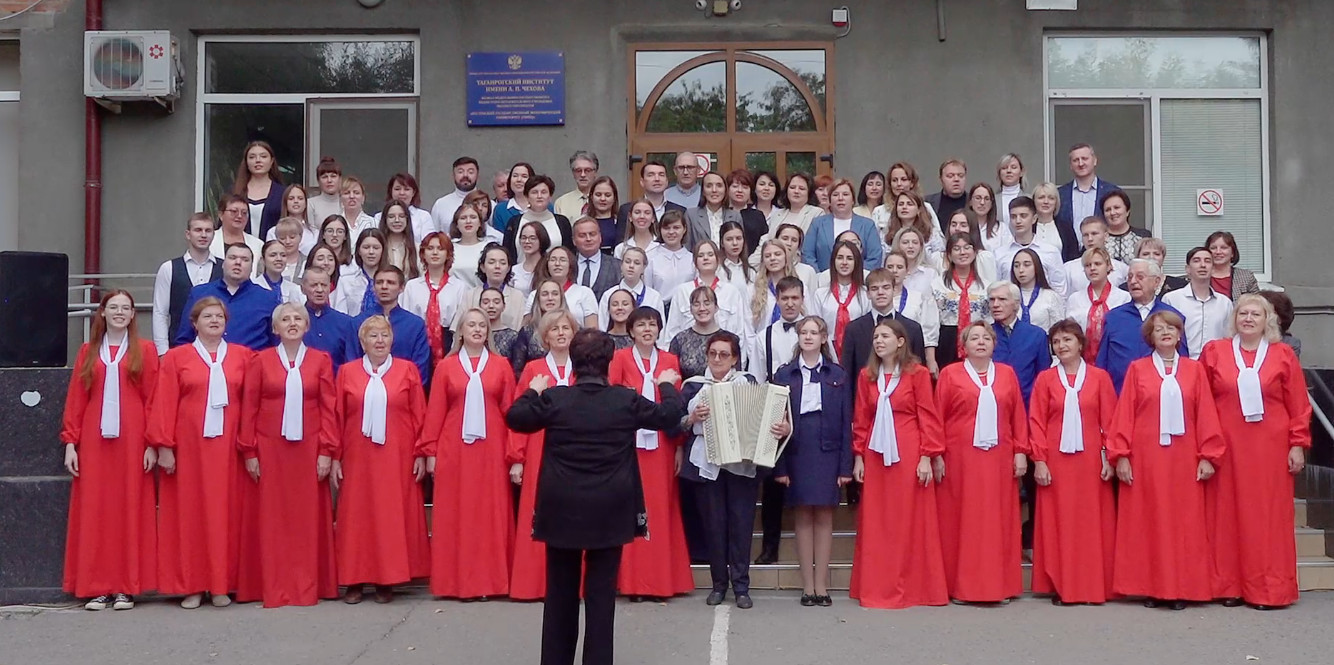 Исполнение Гимна Таганрогского института имени А. П. Чехова .