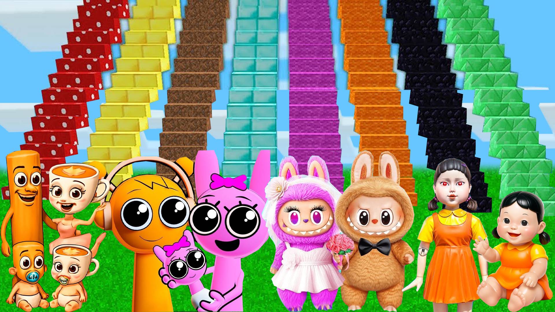ВЫБЕРИ ПРАВИЛЬНУЮ ЛЕСТНИЦУ ЛАБУБУ СПРУНКИ МЕМЫ БРЕЙНРОТ КУКЛА ИЗ ИГРЫ КАЛЬМАРОВ В МАЙНКРАФТ