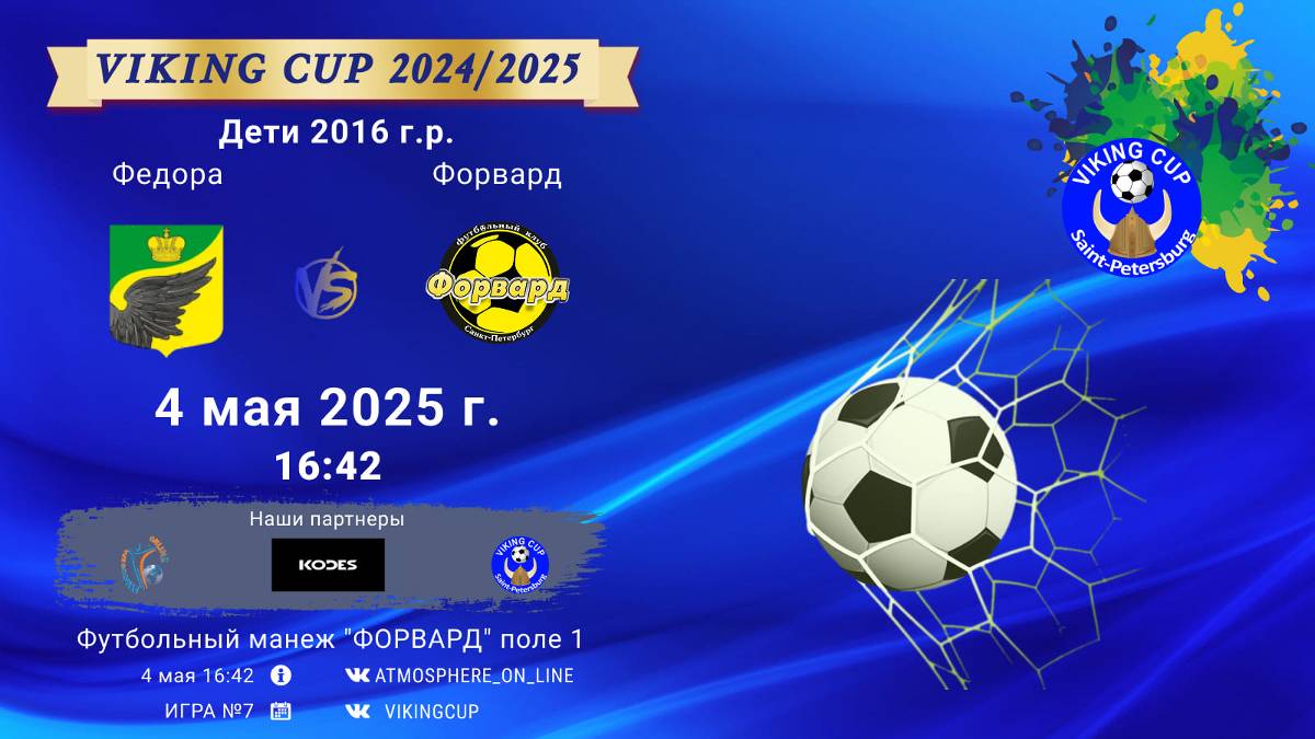 VIKING CUP среди команд 2016 г.р. (U9), Поле 1 4 мая 2025 САНКТ-ПЕТЕРБУРГ, ФЦ "Форвард" ФК "Федора" - ФК "Форвард"/VIKING CUP, Игра №7, 04-05-2025 16:42