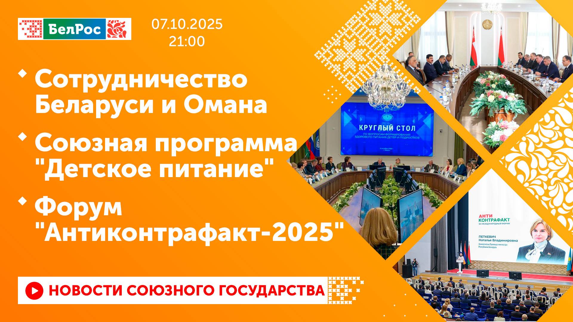 Сотрудничество Беларуси и Омана / Союзная программа "Детское питание" / Форум "Антиконтрафакт-2025"