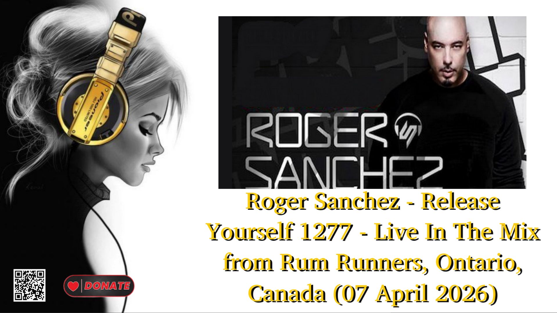 Roger Sanchez - Release Yourself 1277 - Live In The Mix from Rum Runners, Ontario, Canada (07 April 2026) Artists: Roger Sanchez Show: Roger Sanchez - Release Yourself Genre: Tech House Duration: 118m Audio Bitrate: 320kbps 44100kHz FileSize: 109.87 MB Post Date: 08-April-2026 Rec Date: 07-April-2026