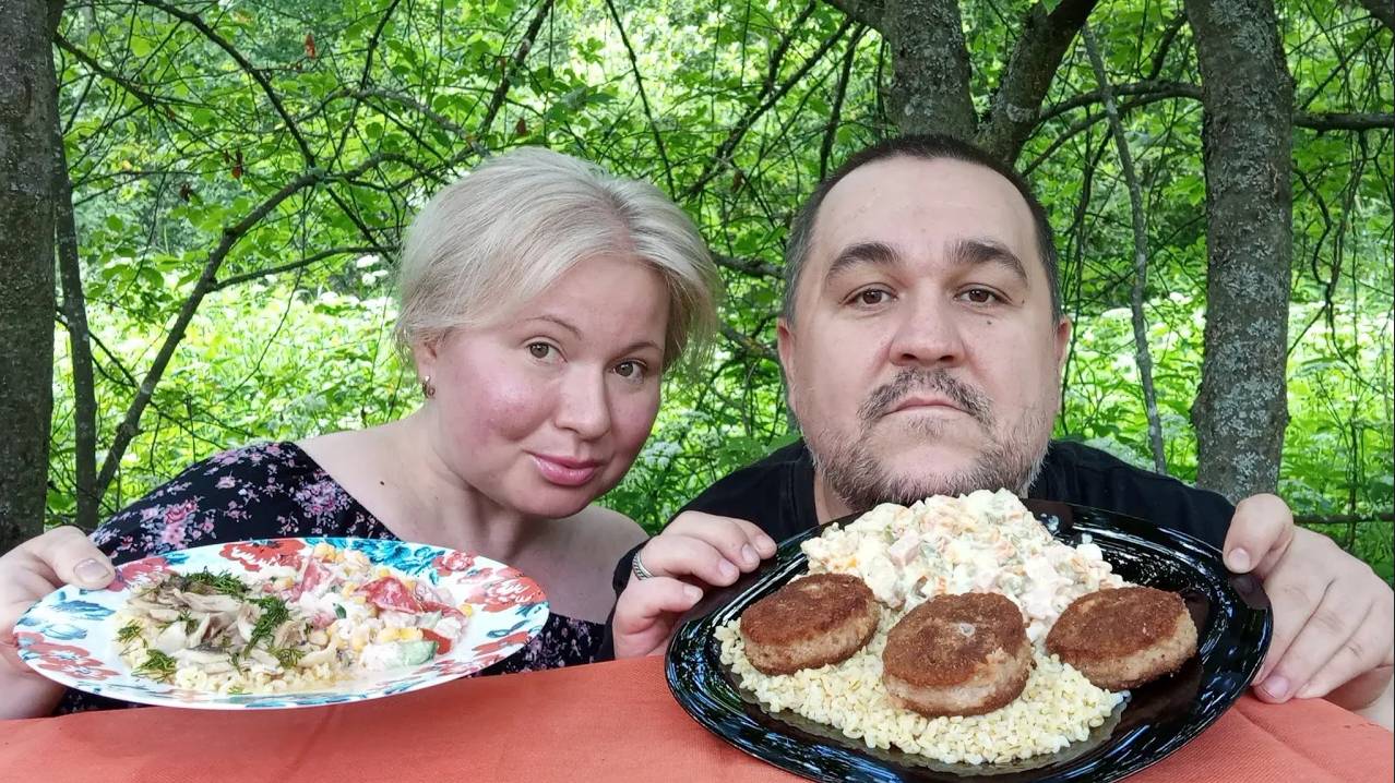 Мукбанг - оливье, рубатки, булгур, куриный микс