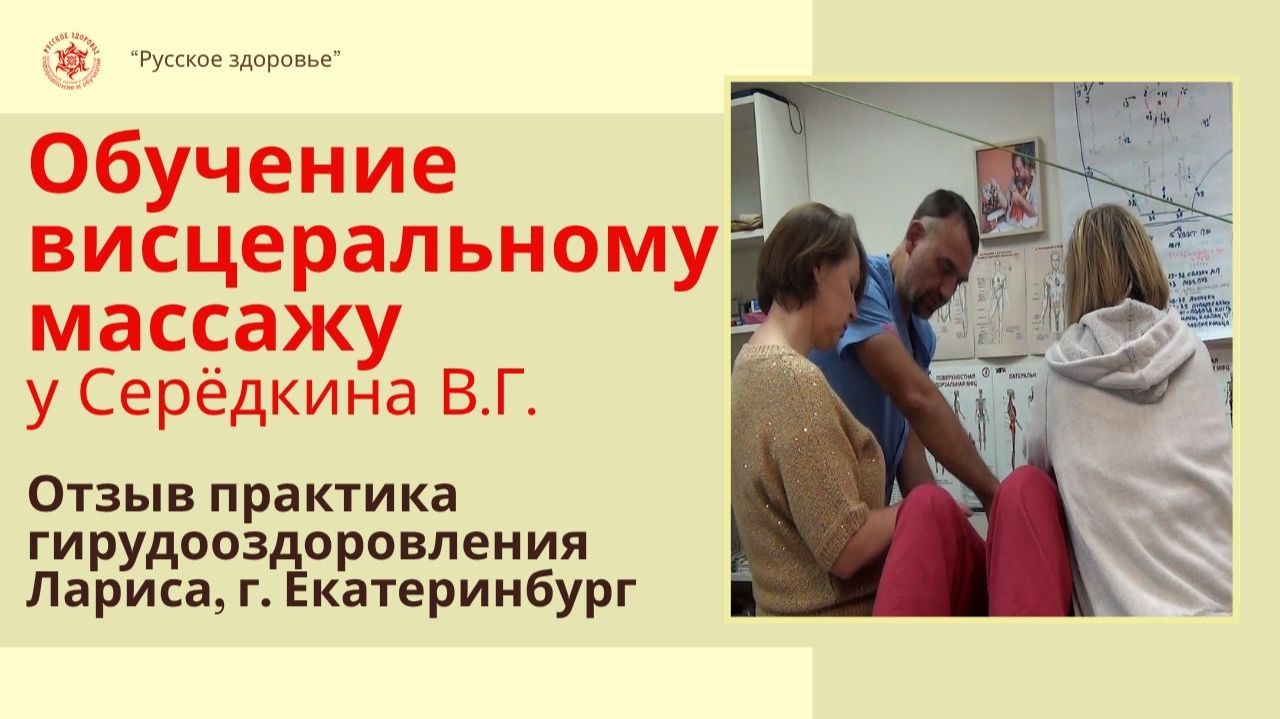 Подробно - в видео Лариса, г Екатеринбург, практик гирудооздоровления, ранее обучение онлайн массажу живота в другой школе. «Я прошла обучение висцеральному массажу живота у Серёдкина В.Г. На семинаре я получила очень глубокие знания, с подробной проработкой практической техники. Кроме висцерального массажа, Владимир Геннадьевич дал много информации по питанию, образу жизни, в общем про то, как оздоравливать организм в целом. Я не ожидала, что будет такой большой объем информации Рекомендую данный семинар всем! Выражаю огромную благодарность Владимиру Геннадьевичу» ✅ Описание обучения бронь места на курсе висцерального массажа https://ruszdrava.ru/folkmassage ✅ Связаться с менеджером и задать вопросы про обучение на курсах: +79222160707