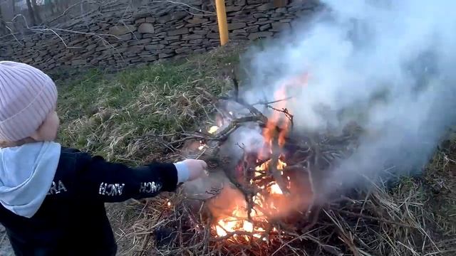 ЖИВЕМ В ДЕРЕВНЕ!УСТРОИЛИ СУББОТНИК!ГРЕБЁМ И СЖИГАЕМ ПРОШЛОГОДНЮЮ ТРАВУ ПЕРЕД ДОМОМ!Деревенский влог
