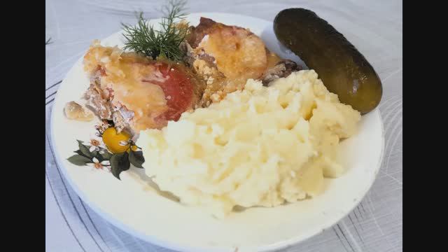 Очень красивое и праздничное блюдо, способное удивить и порадовать ваших гостей! Сочные свиные отбивные запекаются с овощами и сыром в духовке, получается очень аппетитно и вкусно! Попробуйте!