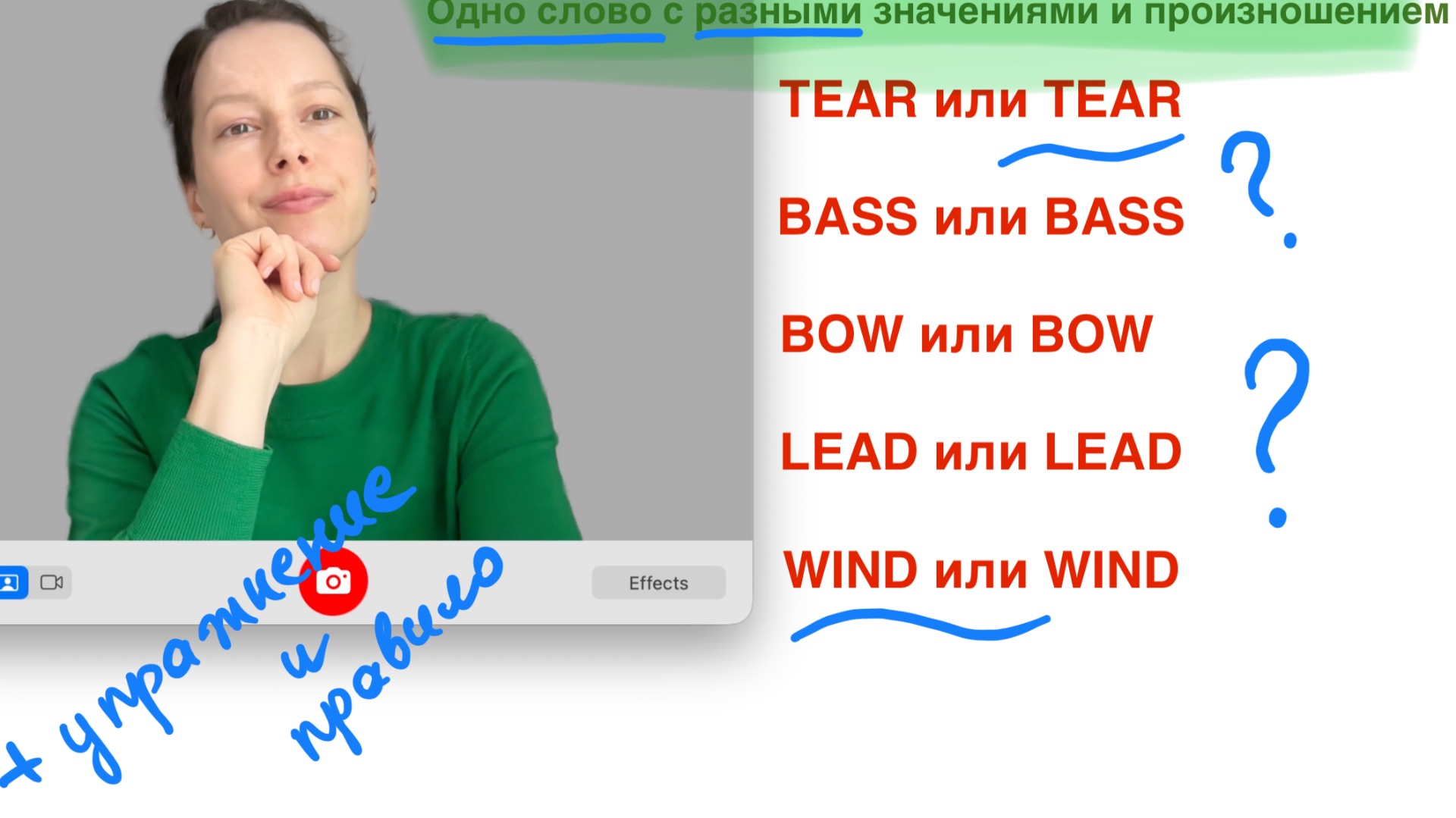 В этом мини-уроке для уровня учимся произносить 5 слов, которые одинаково пишутся, но имеют разное произношение и значение. Мини-правило с I FEEL. Обязательно делаем упражнения и практикуем произношение. Берите блокноты и let's go! Записаться ко мне на занятие можно написав сообщение в Telegram @eng_fiveone На онлайн уроках мы обсуждаем интересные темы, улучшаем произношение и делаем много полезных упражнений, чтобы выйти на новый уровень. #английский #english #урок английского #произношение #английский 5+1