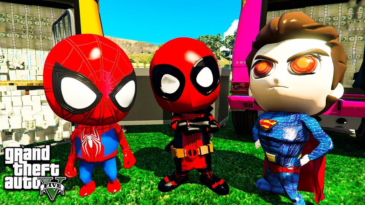 МАЛЫШ ДЭДПУЛ И ЧЕЛОВЕК ПАУК ОГРАБИЛИ БАНК В ГТА 5 МОДЫ! ОБЗОР МОДА В GTA 5! ИГРЫ ВИДЕО MODS