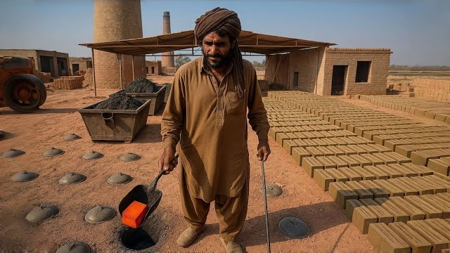 Удивительный процесс изготовления кирпичей ручной работы в Пакистане