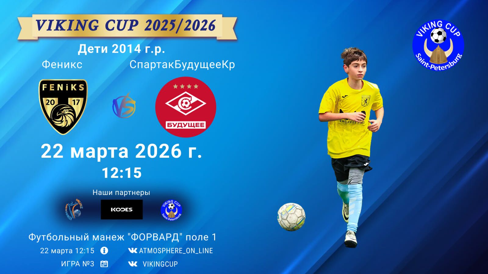 VIKING CUP среди команд 2014 г.р. (U12), Поле 1 22 марта 2026 САНКТ-ПЕТЕРБУРГ, ФЦ "Форвард" Феникс-СпартакБудущееКрасные/VIKING CUP, Игра №3, 22-03-2026 12:15