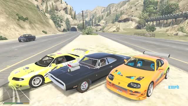 Nissan Skyline GTR R33 vs Dodge Charger vs Toyota Supra cупер тачки из форсажа в гта 5
