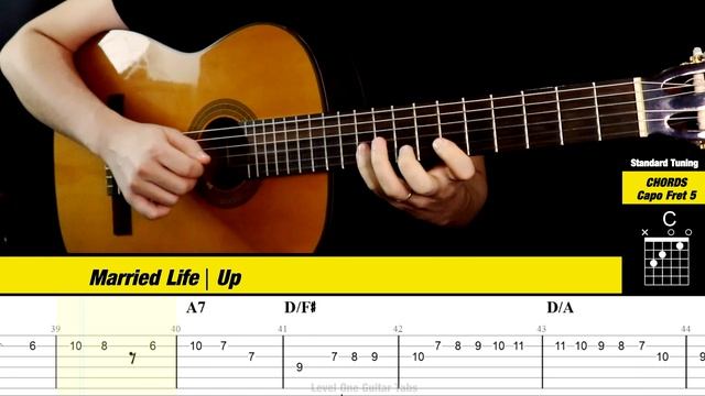 MARRIED LIFE на Гитаре. Уроки Гитары. Ноты и табы Гитары Level Up Guitar Tabs