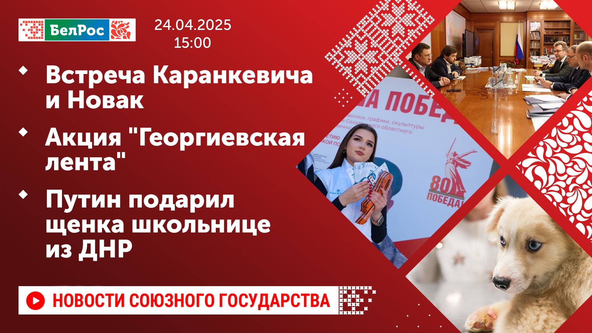 Встреча Каранкевича и Новак / Акция "Георгиевская лента" / Путин подарил щенка школьнице из ДНР
