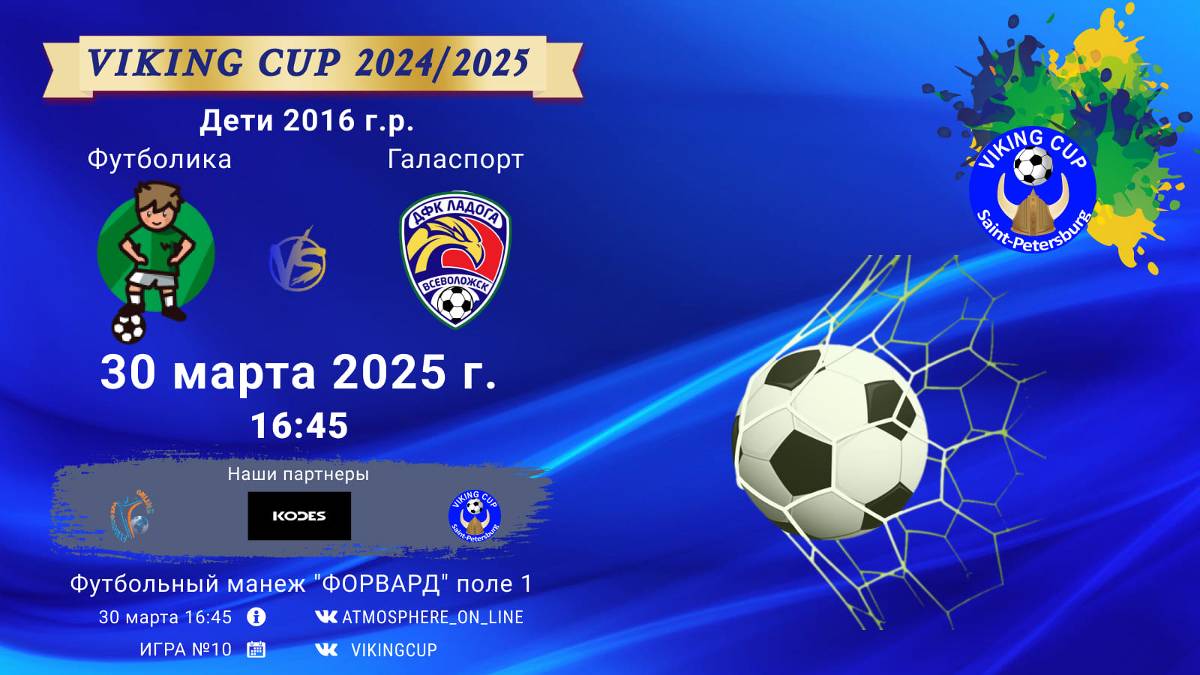 VIKING CUP среди команд 2016 г.р. (U9), Поле 1 30 марта 2025 САНКТ-ПЕТЕРБУРГ, ФЦ "Форвард" ФК "Футболика" - ФК "Галаспорт"/VIKING CUP, Игра №10, 30-03-2025 16:45