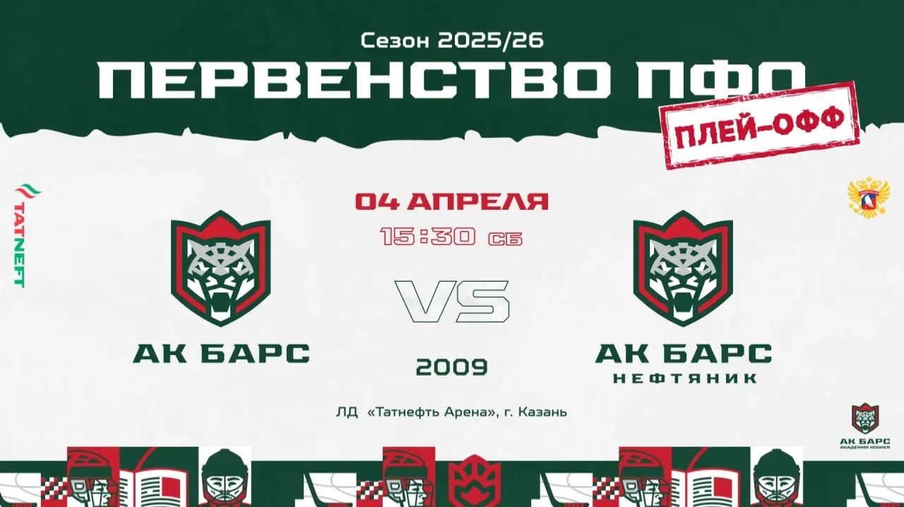 2009г.р.-04.04.26г. _ПЛЕЙ-ОФФ, ИГРА №1_ ЛДС "Татнефть - Арена", Первенство ПФО, - сезон 2025/26