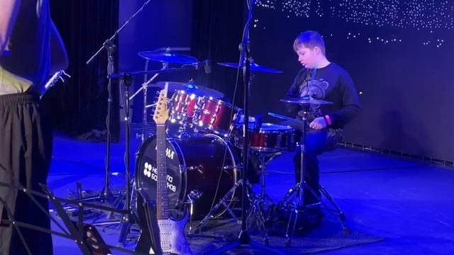 Молодой и уверенный ученик-барабанщик из Не школы барабанов.