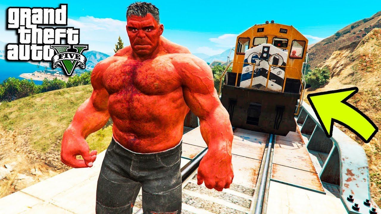 В ЛАБОРАТОРИИ СОЗДАЛИ ОГРОМНОГО ЗЛОГО ХАЛКА В ГТА 5 КРАСНЫЙ ХАЛК ОБЗОР МОДА ГТА 5