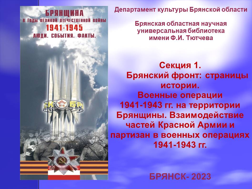 Секция 1. Брянский фронт: страницы истории. Военные операции 1941-1943 гг. на территории Брянщины. Взаимодействие частей Красной Армии и партизан в военных операциях 1941-1943 гг. Часть 2