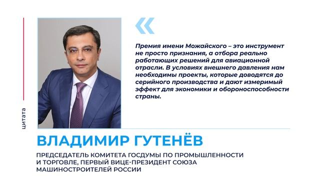 Союз машиностроителей и ОАК запускают премию имени Можайского для сотрудников авиаотрасли
