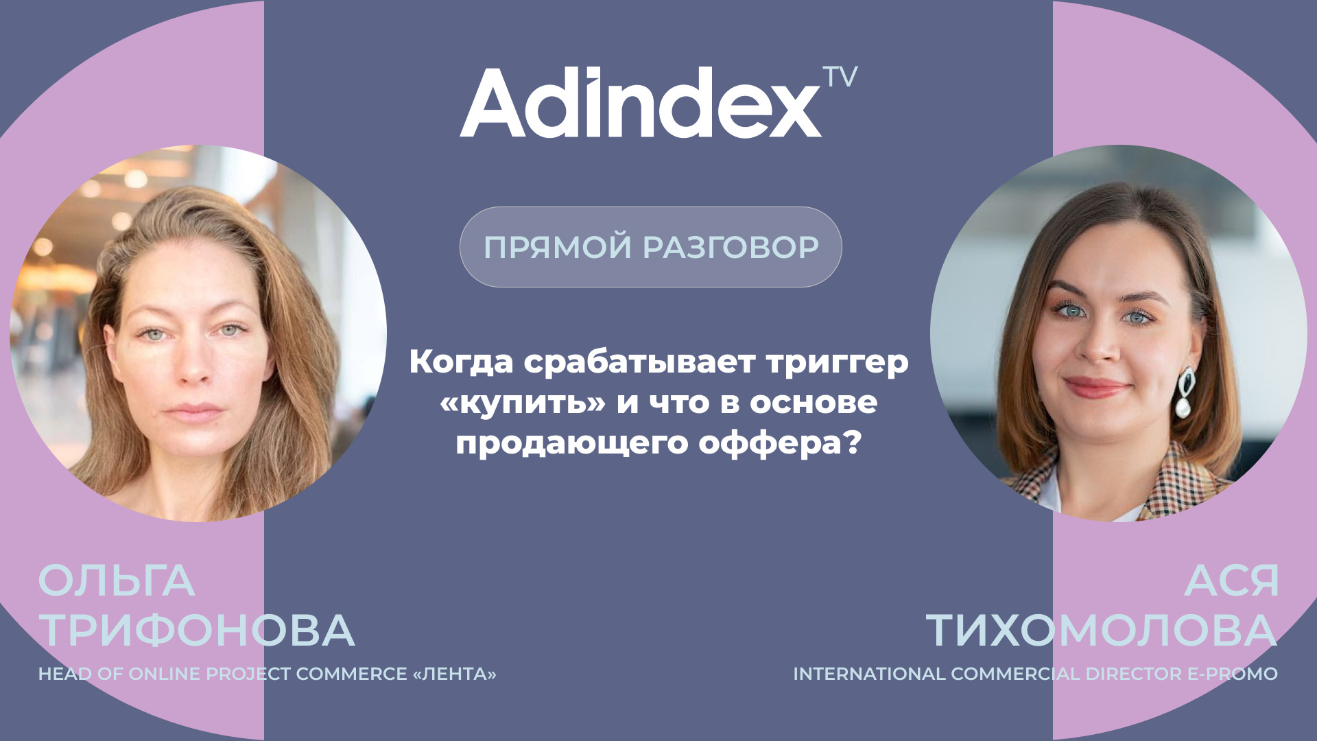 Как сегодня выстраивать сотрудничество с партнерами, нужно ли делать упор на этичном контенте, с какими офферами выходить как в диджитал, так и в оффлайне — подробно в новом выпуске «Прямой разговор». Гости эфира: — Ася Тихомолова, International Commercial Director E-Promo — Ольга Трифонова, Head of Online Project Commerce «Лента» Если вы хотите стать гостем нашей программы, предложить тему для выпуска или задать вопрос гостям, пишите в наш телеграм-бот: @AdIndex_news_bot Подписывайтесь на телеграм-канал для оперативных новостей https://t.me/adindex_live Adindex во «ВКонтакте»: https://vk.com/adindex Adindex в Одноклассниках: https://ok.ru/adindex.ru *В эфире могут упоминаться социальные сети Instagram и Facebook — организации признаны экстремистскими и запрещены на территории Российской Федерации.