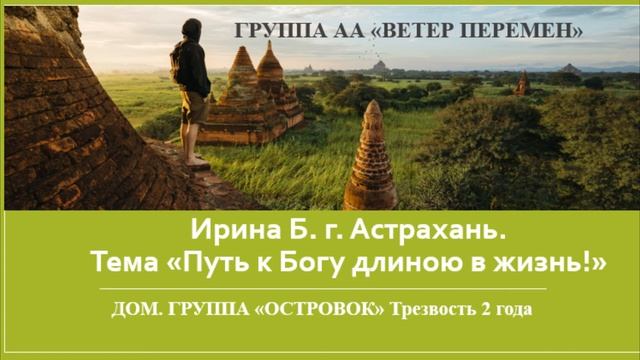 Ирина Б. г. Астрахань. Дом. группа "Островок" Тема "Путь к Богу длиною в жизнь!" Трезвость 2 года.
