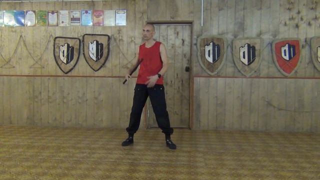 Наработка совмещения ударов и перемещений с одной и двумя дубинками.