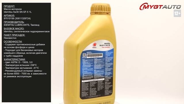 Продукт: Масло моторное Idemitsu 5W-30 SN GF-5 1L Артикул: 97010156 (30011328724) - 1L Производитель: IDEMITSU LUBRICANTS, Таиланд Базовое масло: Idemitsu, синтетическое гидрокрекинговое Пакет присадок: неизвестно. Ссылка для покупки: https://mygt.ru/oil/Idemitsu/idemitsu-fully-synthetic-sngf-5-5w30-1-l.html Ссылки на дополнительные материалы по продукту, а так же SDS: http://nskrobot.ru/images/FOTO/MYGT_RU/97010156_30011328724.pdf #характеристикимасла97010156(30011328724) #моторноемасло #antonmygt #mygtru #mygtauto #oemcatalog Наш сайт: MYGT.RU Наш канал ПРАВДА ПРО АВТОМАСЛА: https://www.youtube.com/channel/UC5JygfcXAA5Xq18sxUx_wIQ/ Телефон: 8 800 550 57 22 Бесплатно по России Внимание! Полное либо частичное копирование данного материала без согласия автора допускается только при указании ссылки на источник (данный канал) Все права защищены. ANTON_MYGT #anton_mygt #anton_voronkov #mygtauto #масломан #каталог масел и спецжидкостей