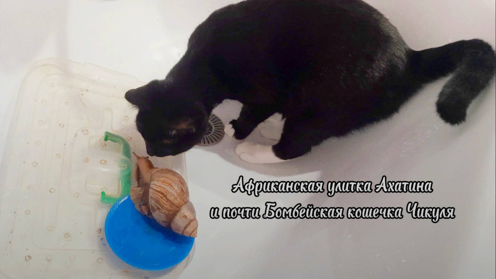 Моя африканская улитка Ахатина Азалия и кошечка Чика #животные #кошки #ахатины